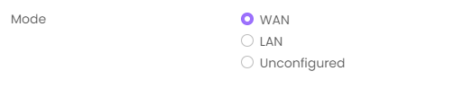 WAN در صورتی که میخواهید روتر خود را با این رابط شبکه به شبکه اینترنت متصل کنید، این گزینه را انتخاب کنید. این گزینه برای اکثر کاربران که میخواهند مودم ADSL/VDSL/FTTH/4G/5G خود را با کابل لن به روتر متصل کرده و از طریق آن به روتر اینترنت بدهند، مناسب است.