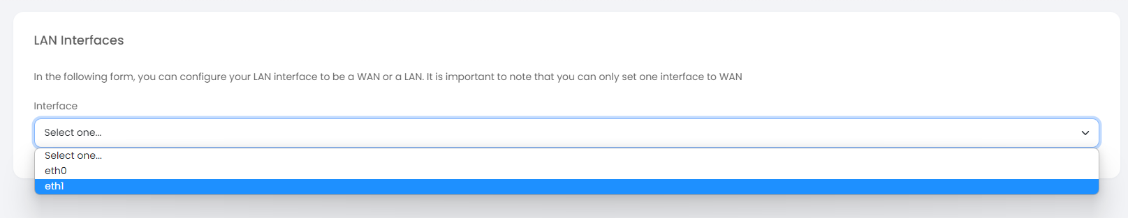 پس از ورود به بخش LANs تنظیمات زیر برای شما نمایش داده میشود. در این تنظیمات یک منوی کشویی وجود دارد که رابطهای شبکه سیمی که به روتر متصل هستند را نشان میدهد. با انتخاب هر کدام از رابط ها تنظیمات مرتبط با آن ظاهر میشود.