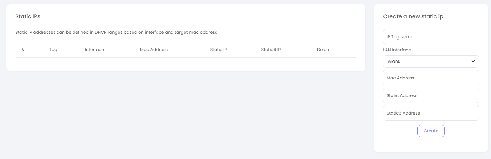 صفحه Static IPs از دو بخش Static IPs / Create a new static ip تشکیل میشود که عملکرد هر یک از این بخش ها به شرح زیر است: