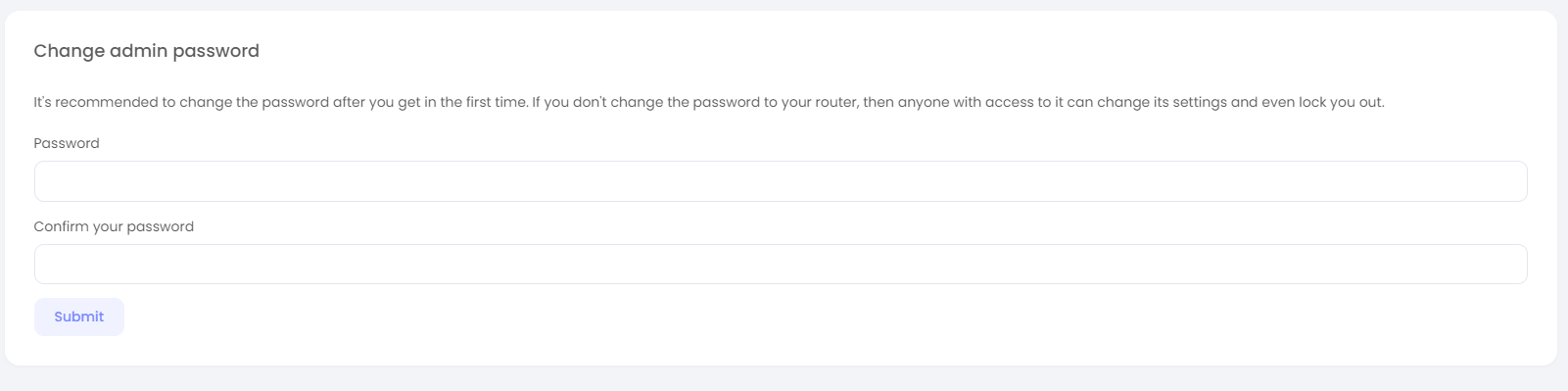 برای این منظور در فیلد Password یک کلمه عبور قوی نوشته و مجددا در فیلد Confirm your password آن را وارد نمایید، سپس برای ذخیره تغییرات روی دکمه Submit کلیک کنید.